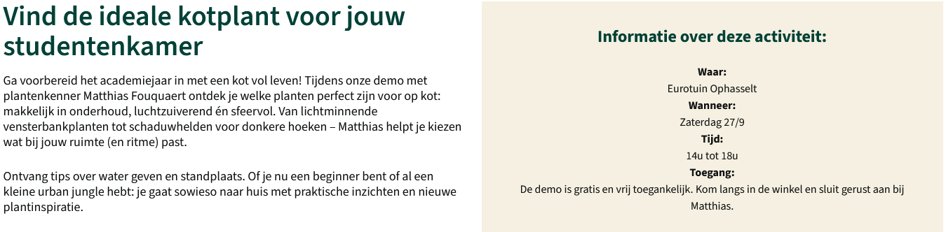 Kom zeker eens langs op 1 van mijn demo's voor al uw plant vraagjes, verzorging en veel meer !!